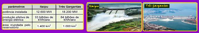 gerada por Itaipu (93 bilhões de kWh) é maior que a energia gerada por Três